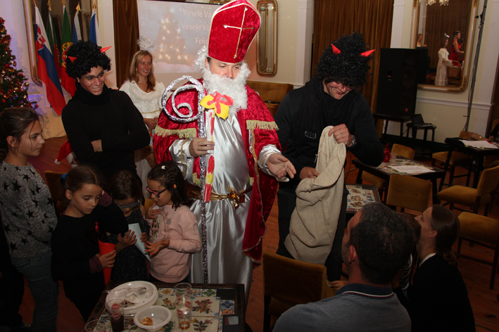 Program začal koncertem žáků a České školy, kteří zazpívali české vánoční koledy za doprovodu kytary paní učitelky Radky Žaludové. Následně mohli hosté ochutnat české, slovenské a portugalské speciality, zatímco čekali na příchod Mikuláše s anděly a čertem. Mikulášská tradice je česká tradice, která značí příchod Vánoc.